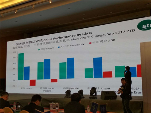 會(huì)上,STR中國區(qū)經(jīng)理劉博,通過來自于中國4700家酒店的經(jīng)營數(shù)據(jù),為在場(chǎng)嘉賓分享了“中國酒店業(yè)績表現(xiàn)回顧及展望”。