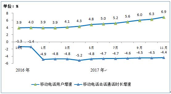 圖6 2016-2017年11月移動(dòng)電話用戶和通話量增幅比較
