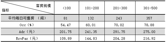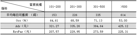三:不同客房規(guī)模的豪華型飯店統(tǒng)計(jì)