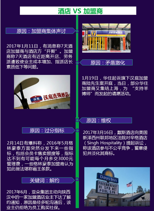 有利益的地方就有糾紛,尤其是經(jīng)濟型酒店與加盟商之間,面臨著成本提升卻還要保持低價、競爭對手林立的市場環(huán)境,就存在了更多的矛盾。