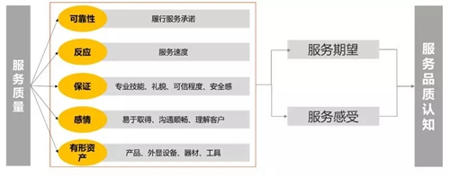企業(yè)同樣需要站在顧客的角度思考服務(wù)質(zhì)量的測量,顧客通常會從五個維度來比較使用前的期望和使用后的實際體驗之間的差距,并形成他們對服務(wù)質(zhì)量的判斷。