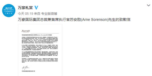 萬豪國際總裁道歉:點(diǎn)贊"藏獨(dú)"系個別員工過失