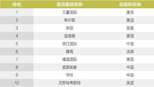 2016年“全球酒店集團(tuán)10強(qiáng)”中國本土品牌占三席